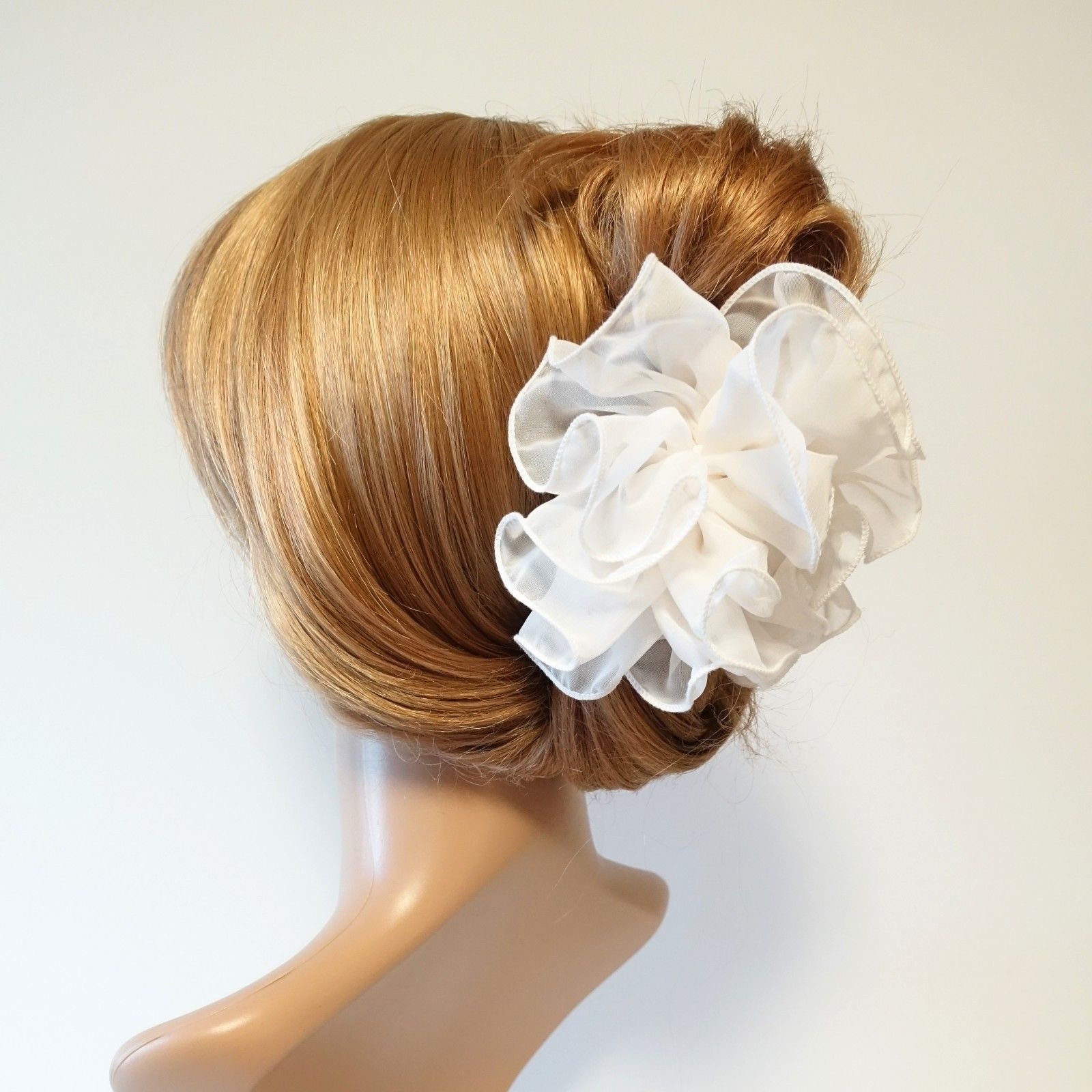 Chiffon Ruffle Wave Hair Claw Solid Color Wave Flower Hair Jaw Etsy